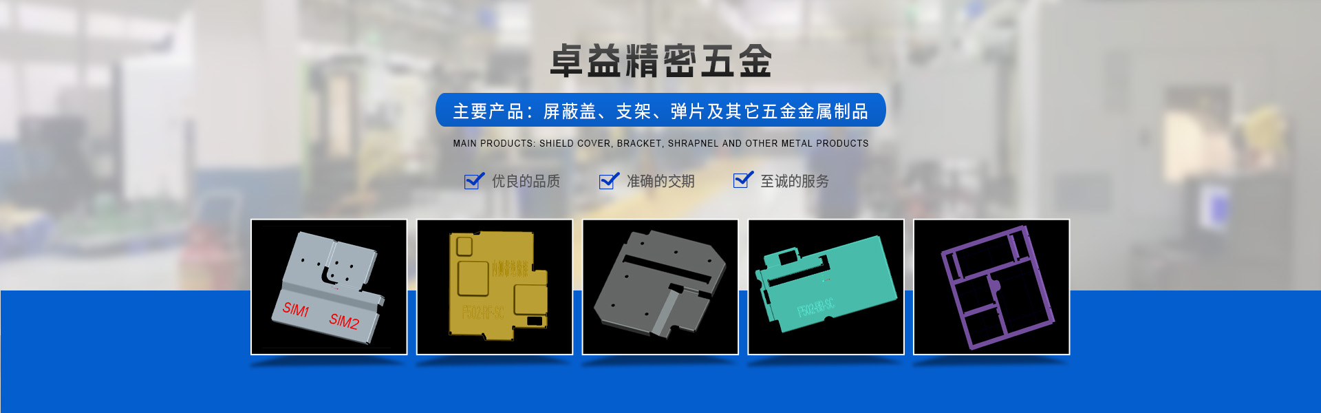 東莞市卓益精密五金有限公司(原深圳市卓杰五金有限公司)創(chuàng)辦于2008年,2016年由于公司業務及規(guī)模升級擴遷致東莞市。本公司是一家五金模具研發(fā)、五金產品制造及銷售為一體的專業制造性企業。目前主要產品有屏蔽蓋、支架、彈片及其它五金金屬制品。